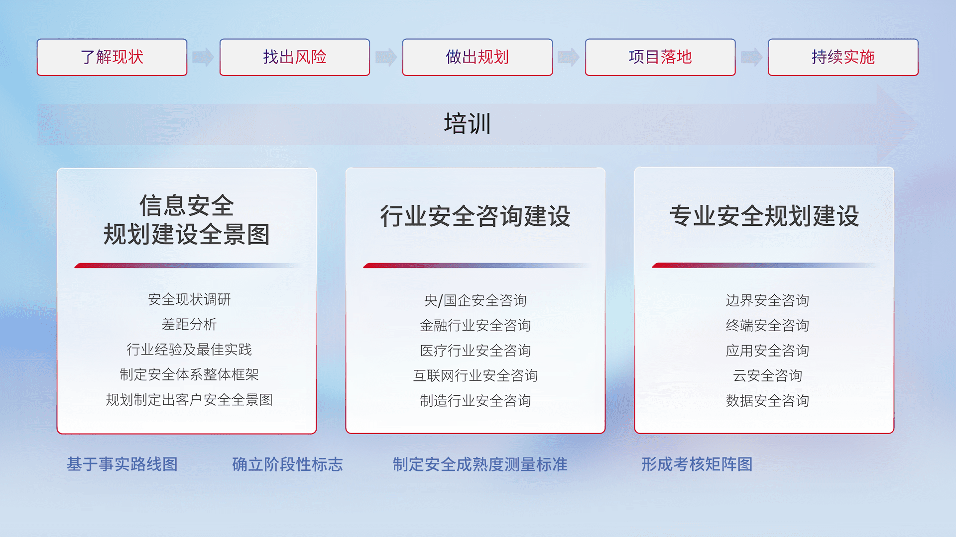 梳理客户信息安全现状调研、、差距分析结果,,,,结合行业先进经验及最佳实践,,,制订客户的信息安全管控体系总结架构,,,最终形成一个完整的客户信息安全规划与建设的全景图。。。