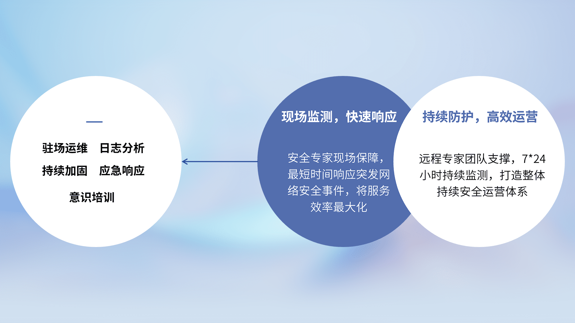 针对客户行业特性,,,提供专属的一站式安全管理服务,,帮助客户全面感知网络空间威胁,,,,通过安全专家的线上、、线下防护支持,,实现风险闭环,,,将安全保障常态化,,,为客户打造常态化安全运维运营服务。。